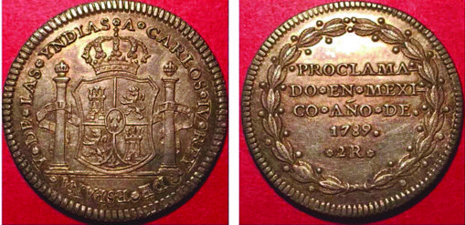 Grove C003a, struck by Mexico City in 1789 for a proclamation ceremony