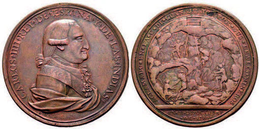 The Marquis of San Juan de Rayas said: “…at the end of that act, a large number of medals were thrown to the people of the town on three occasions, apart from the medal that was distributed on my behalf…”, extracting the relevant information as follows: - The local Council or Cabildo in a letter dated 19 January 1791, described the day of the Proclamation Ceremony on 27 December 1790, in it states “to which he sent to the Court a gold medal, two in silver and two in copper”: in another letter addressed to the King, the Royal Ensign (Alférez Real), Marques de San Juan de Rayas, Don José Ma. de Sardaneta y Legaspi, dated 22 June 1791, with the same purpose, said the following: “I had gold, silver and copper medals opened in Mexico at my expense, to perpetuate the memory of this joy”, and another addressed to the Minister Porlier in which he added that: “put aside the royal busts of SS.MM. and on the other the arms of my house with the corresponding inscriptions” …”