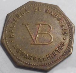 Obverse: HACIENDA EL SAUCILLO / VB / AGUASCALIENTES