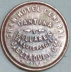 Obverse: GRAN HOTEL CENTRAL / CANTINA / BILLARES / SAN LUIS POTOSI / J. EZZAQUI Y CIA